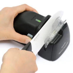 This diamond abrasive sharpener is safe for fine kitchen cutlery, and is recommended for chef’s knives, santoku knives, bread knives, hunting knives, fillet knives, and pocket knives. It can be used to sharpen both single-sided and double-sided edges.