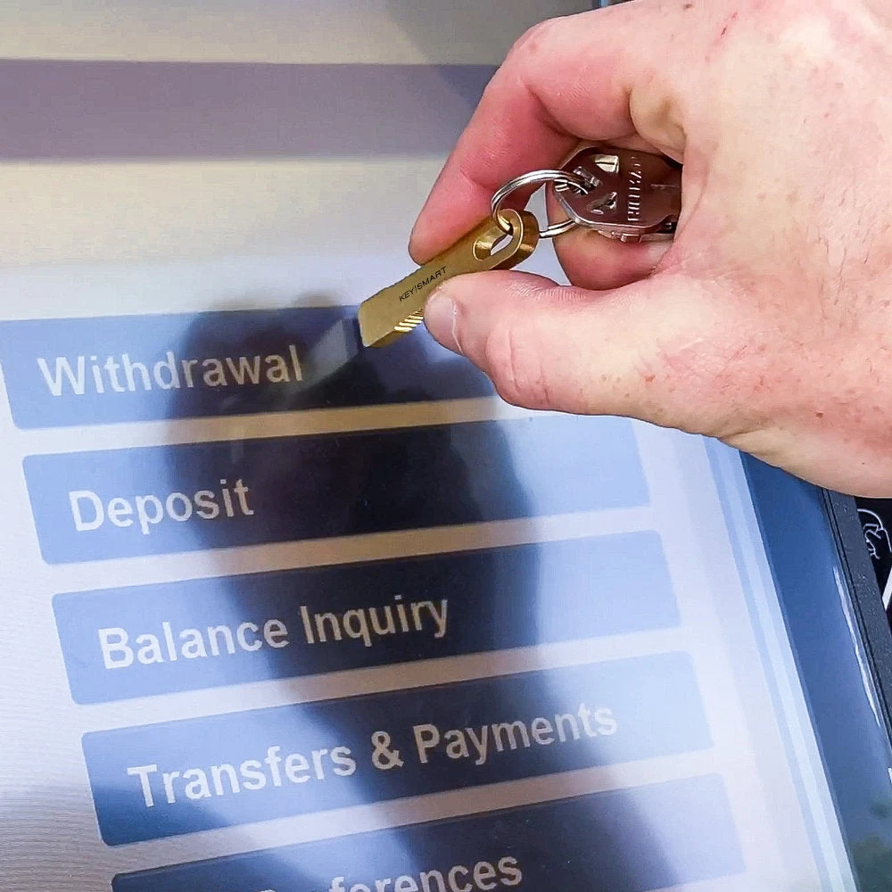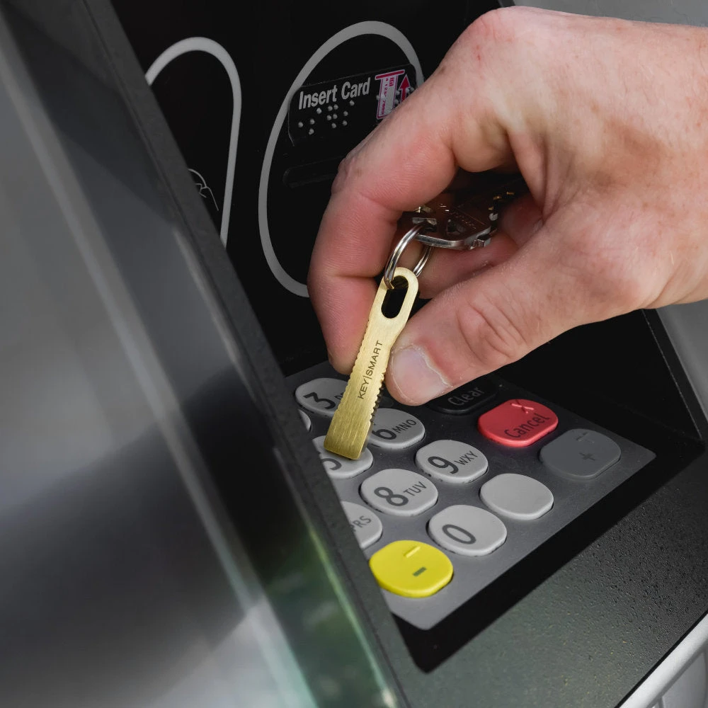 The KeySmart CleanKey Mini Brass Tool is a safe way to avoid touching contaminated surfaces – from touch screens to elevator buttons. This clever mini tool, which fits onto your keyring without adding much bulk, can key in your ATM PIN, press the elevator button for your floor, act as a stylus on touch screens, and more.