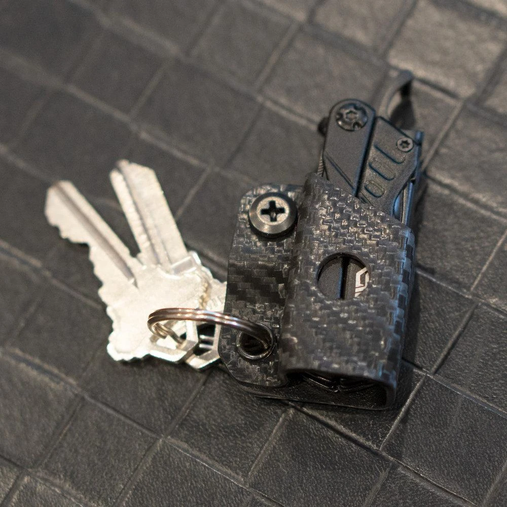 This Clip & Carry Kydex Sheath is designed to fit the Leatherman Squirt or the Gerber Dime. It is proudly constructed in the USA from a durable kydex material, and can be adjusted to your preferences.