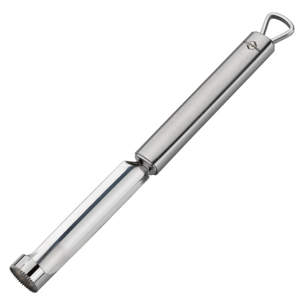 The Kuchenprofi Parma Apple Corer makes short work of coring even a large batch of apples. The sharp, serrated, tubular blade cuts right down through the center of apples.