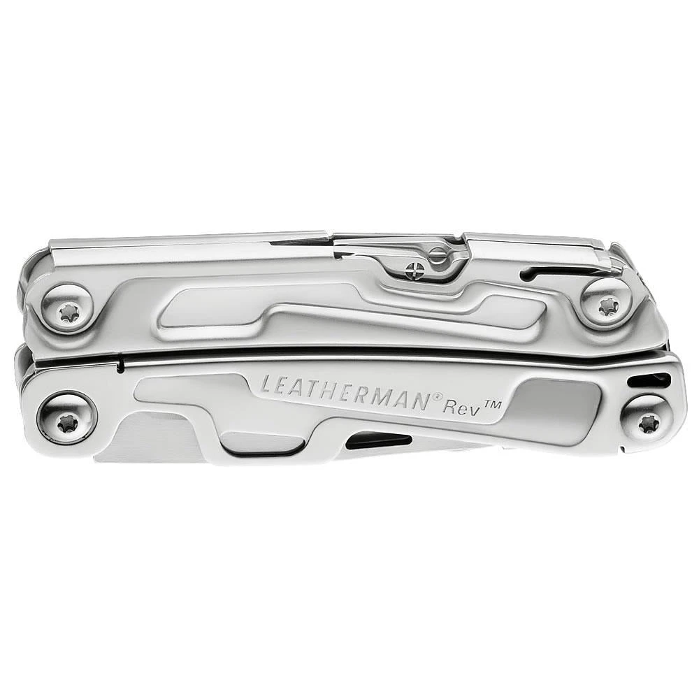 The Leatherman REV Multi-Tool packs 12 tools into one compact, rugged stainless steel body. Handy, all locking outside-accessible blades are easy to open with just one hand, and contoured handles make this multi-tool comfortable to hold, no matter how tough the task.